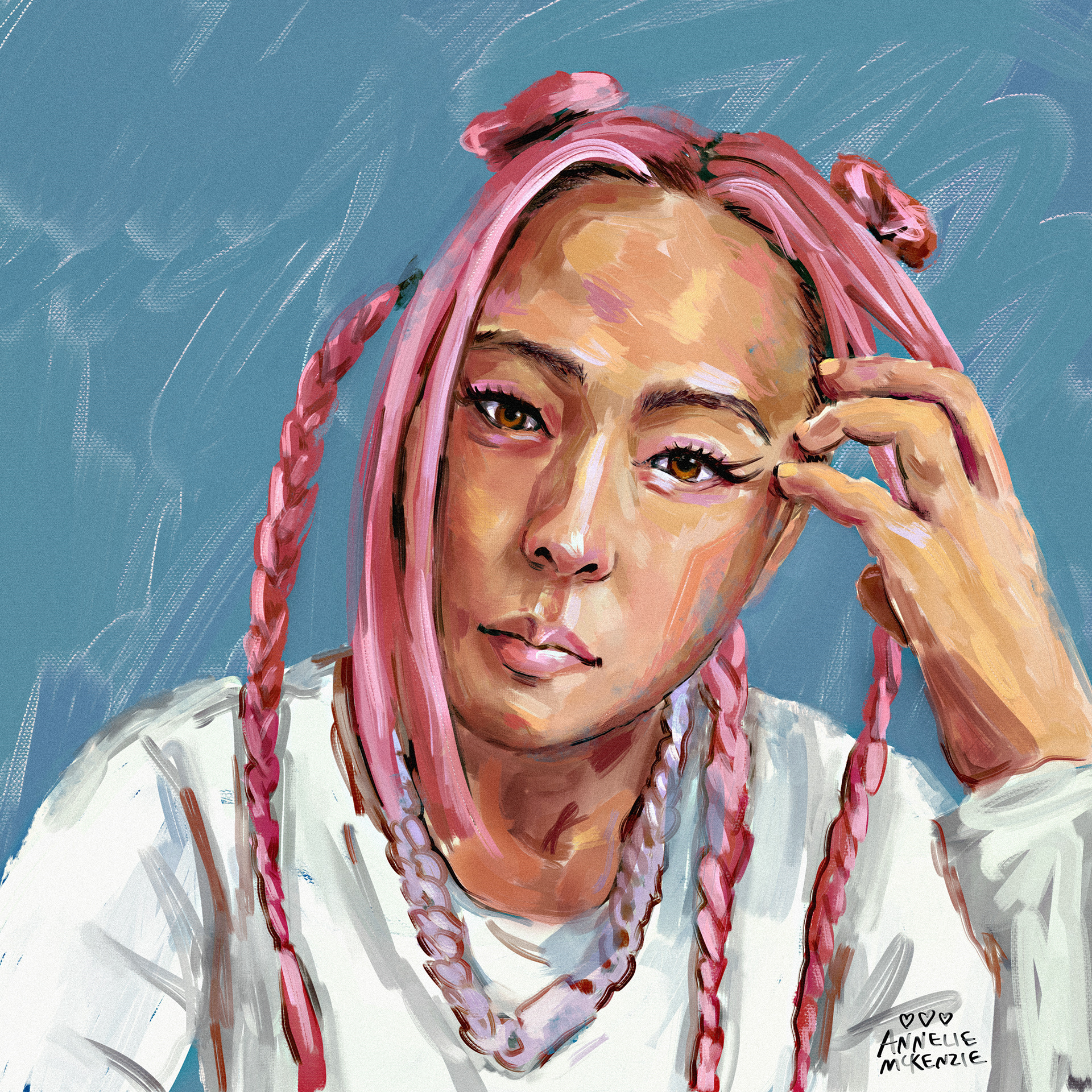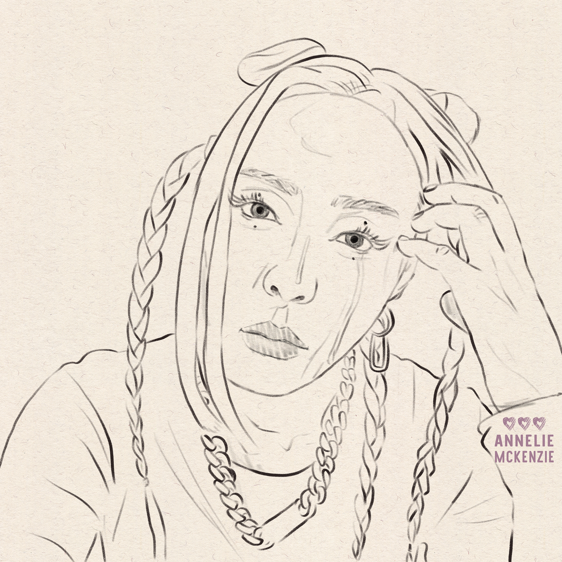 Digital portrait of a young woman's face with braided hair with simple animation.